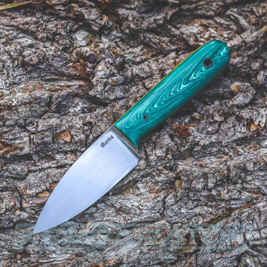 Barta Zsolt kései közül az egyik legkedveltebb modell a Koala. Ez a változat Becut pengével, Juma markolattal, sárga fiberrel, carbon szegecsekkel és Kydex tokkal készült. Kiváló EDC fixpengés kés.