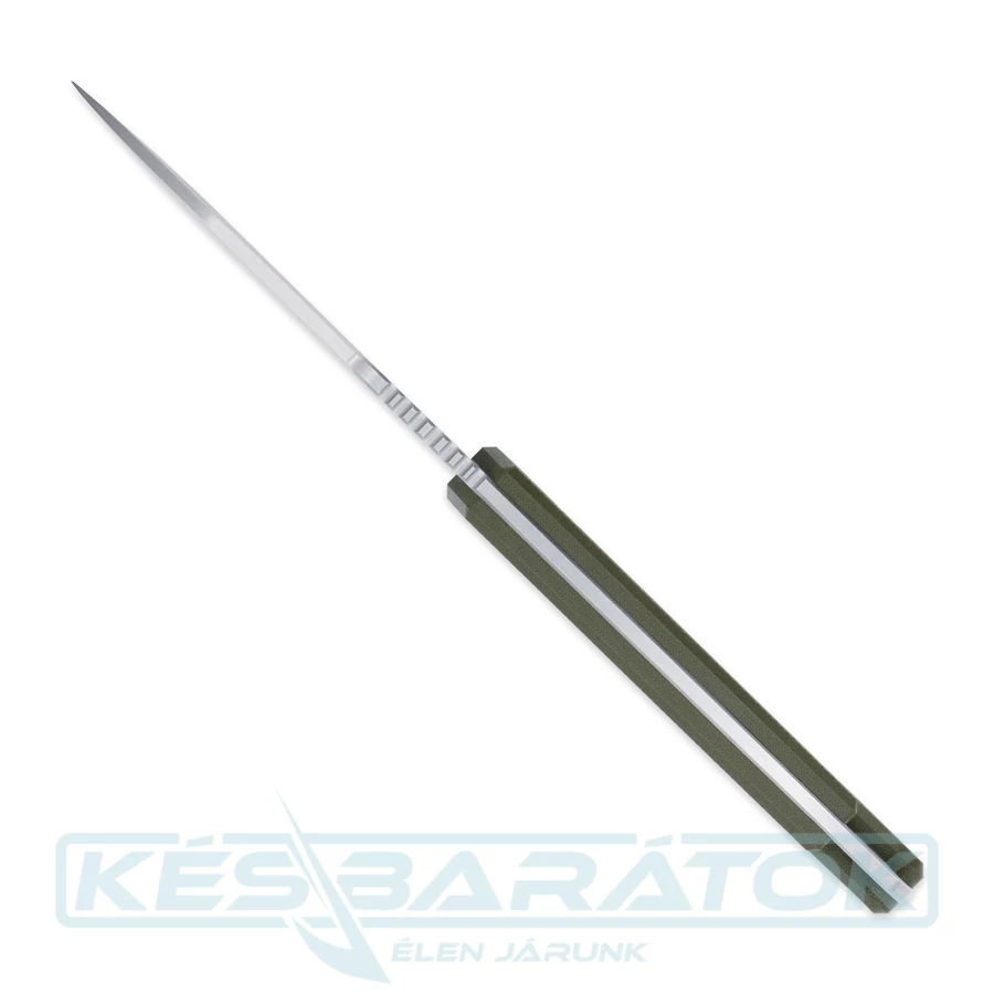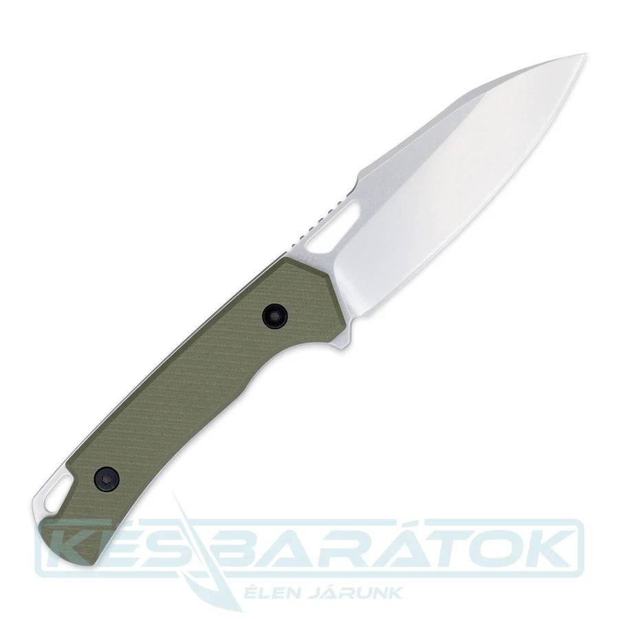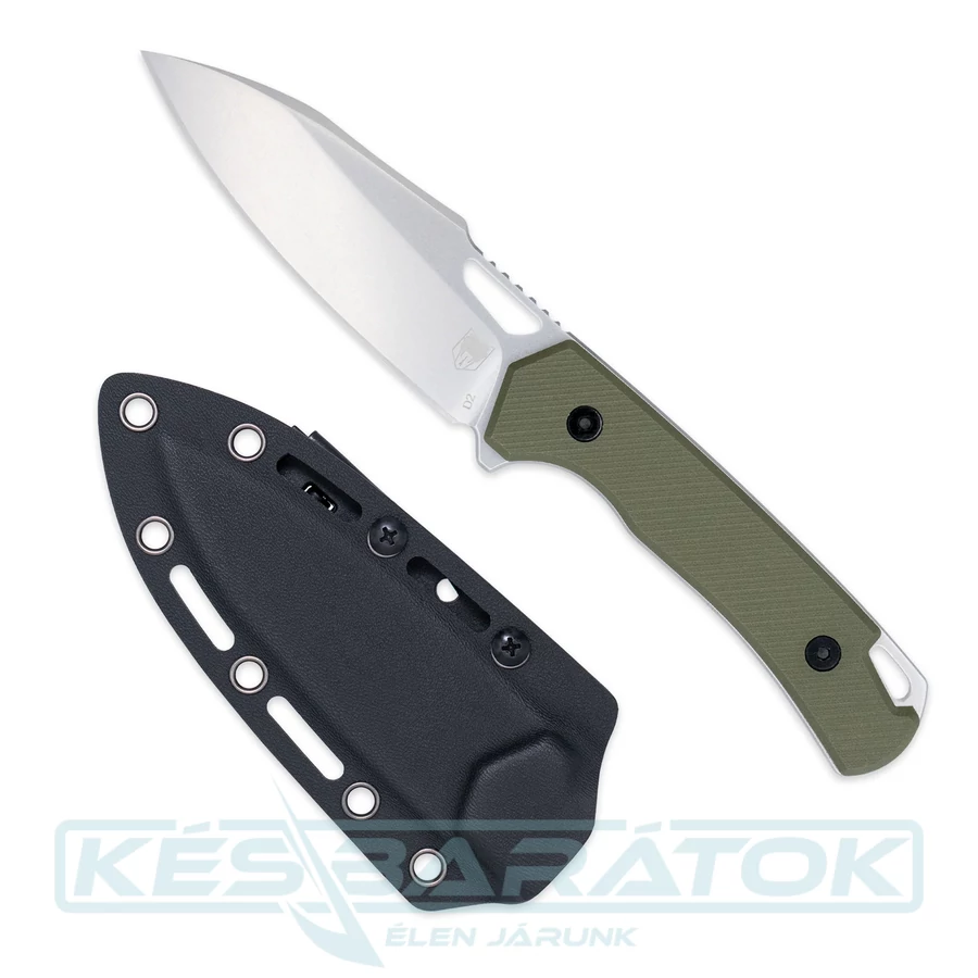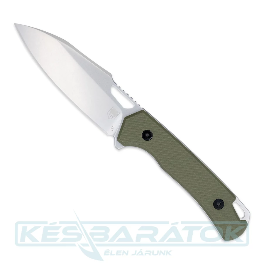 Szemet gyönyörködtető forma és kimagasló funkcionalitás. Sokan azért szeretik az ilyen fixpengés - se nem túl nagy, se nem túl kicsi - késeket, mert elképesztően sok mindenre lehet őket befogni. Túra, vadászat, kemping, akár konyhai segédkezés, szinte bármi jöhet. A D2 penge elég éltartást ígér, a G10 markolat strapabíró, az egész konstrukció stabilitást, erőt sugároz. Szeretjük!