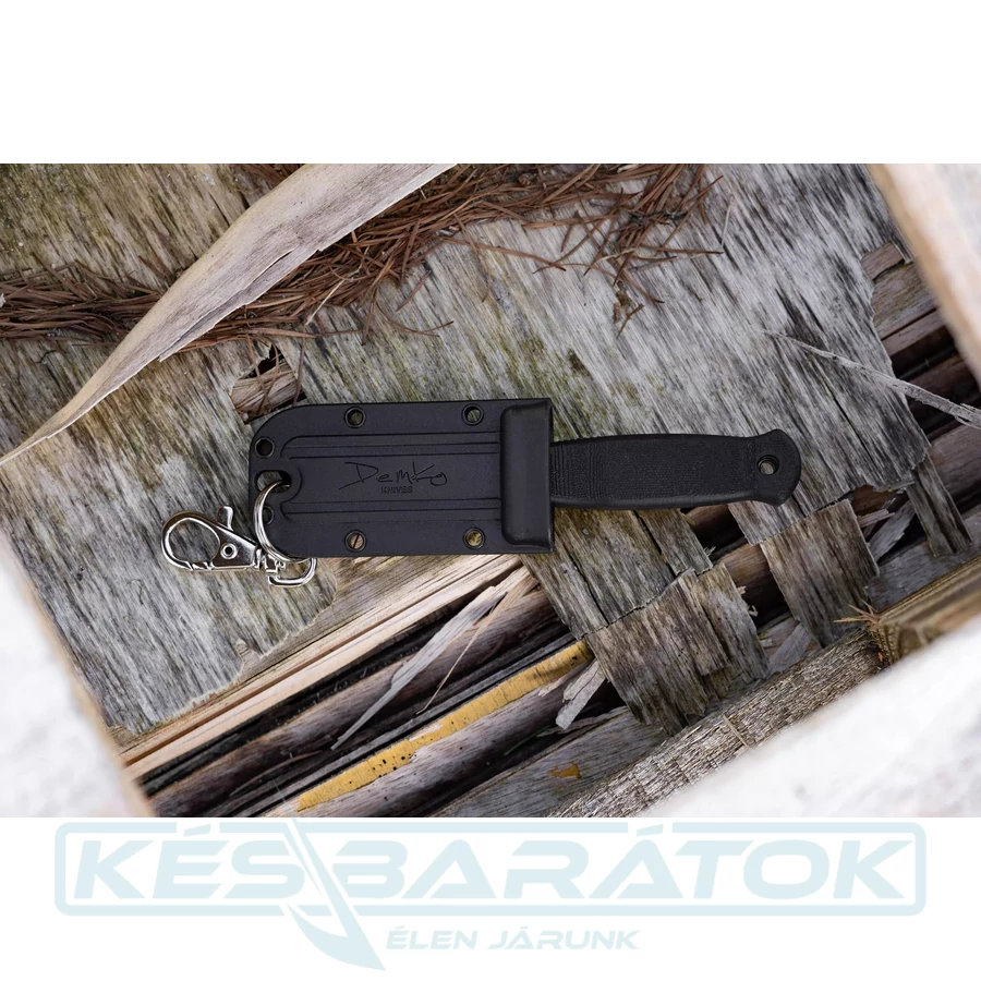 A Demko Knives Armiger 2 Clip Point 4034SS TPR Black outdoor kés szinte észrevétlenül bújik meg a ruházat alatt. MOLLE-kompatibilis Kydex tokkal és tartós csiptetővel rendelkezik, amely kulcstartóra vagy hátizsákra rögzíthető. Kiváló mini kísérőnk lehet minden élethelyzetben.