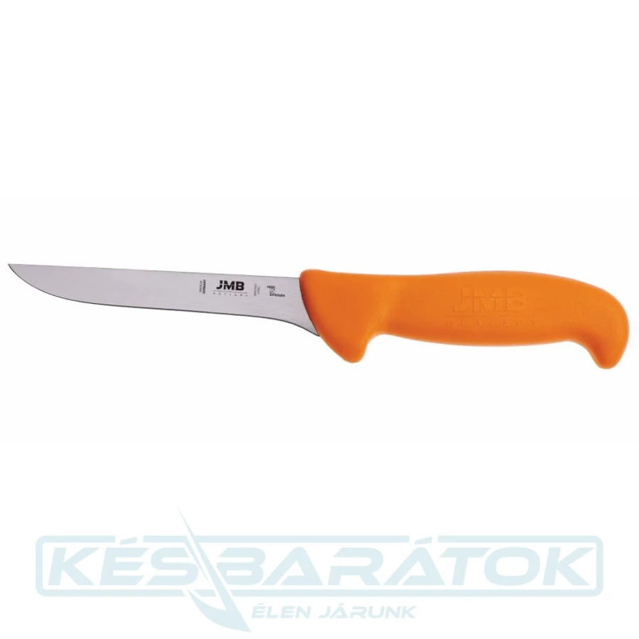 12,5 cm-es professzionális, egyenes csontozókés a németországi JMB Cutlery műhelyéből, mely kiválóan használható csontozási feladatokhoz konyákban, és természetesen professzionális, üzemi húsfeldolgozáshoz is. A kés markolata kiváló fogást biztosít, így akár hosszabb távú munkavégzés során is kényelmesen, biztonságosan használható. Ez a kés iváló minőségű, SANDVIK 14C28N svéd acélból készült, mely közismert kiváló éltartásáról és korrózióállóságáról. Az ebből az acélból készült kések éltartása lényegesen jobb, mint az általánosan használt késacéloké, így sokkal tovább élesek maradnak. Ráadásul a Sandvik acél szemcseszerkezete rendkívül homogén, így nagyon finom él élezhető az ilyen acélból készült késekre. A gyártó különös figyelmet fordít az acélok hőkezelésére, mely garanciát jelent a kiváló minőségre.