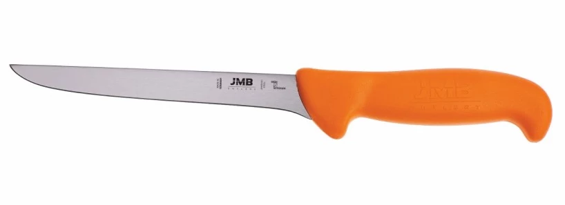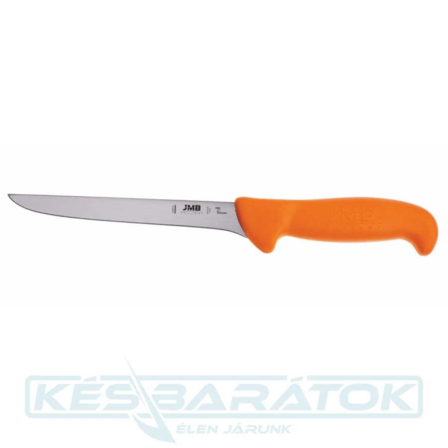 17,5 cm-es professzionális, egyenes csontozókés a németországi JMB Cutlery műhelyéből, mely kiválóan használható csontozási feladatokhoz konyákban, és természetesen professzionális, üzemi húsfeldolgozáshoz is. A kés markolata kiváló fogást biztosít, így akár hosszabb távú munkavégzés során is kényelmesen, biztonságosan használható. Ez a kés iváló minőségű, SANDVIK 14C28N svéd acélból készült, mely közismert kiváló éltartásáról és korrózióállóságáról. Az ebből az acélból készült kések éltartása lényegesen jobb, mint az általánosan használt késacéloké, így sokkal tovább élesek maradnak. Ráadásul a Sandvik acél szemcseszerkezete rendkívül homogén, így nagyon finom él élezhető az ilyen acélból készült késekre. A gyártó különös figyelmet fordít az acélok hőkezelésére, mely garanciát jelent a kiváló minőségre.