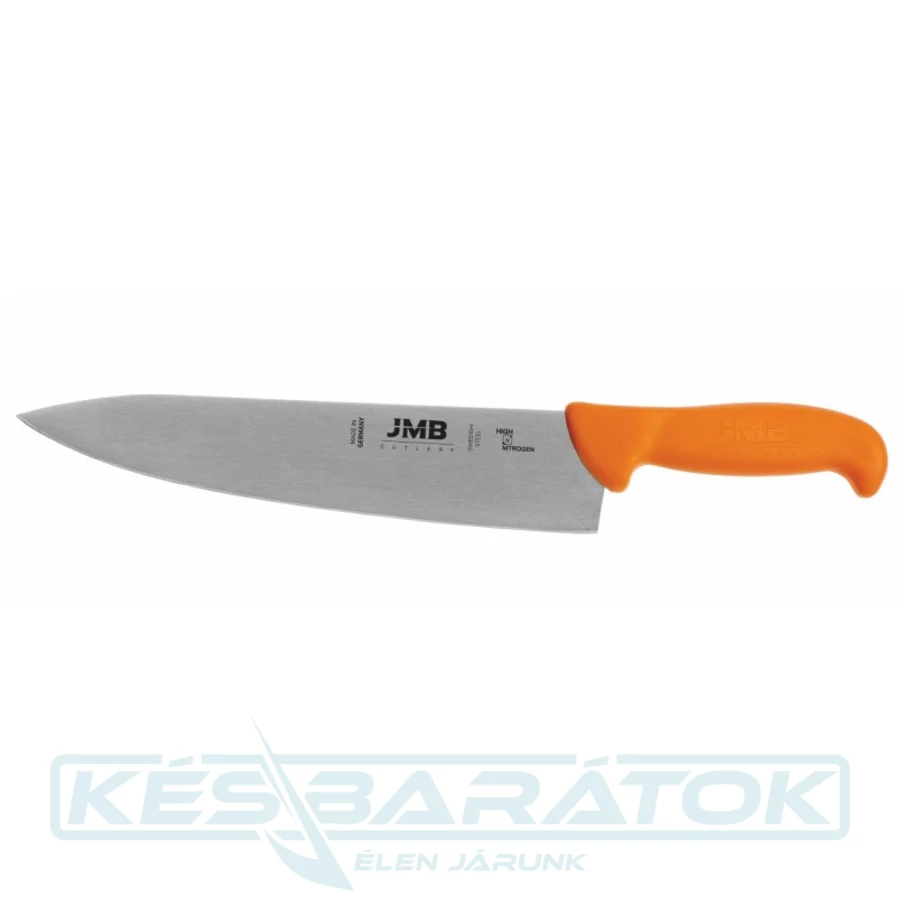 25 cm-es professzionális szakácskés a németországi JMB Cutlery műhelyéből, mely kiválóan használható általános konyhai munkákhoz, húsok és zöldségek feldolgozására, szeletelésére, aprítására. A kés markolata kiváló fogást biztosít, így akár hosszabb távú munkavégzés során is kényelmesen, biztonságosan használható.