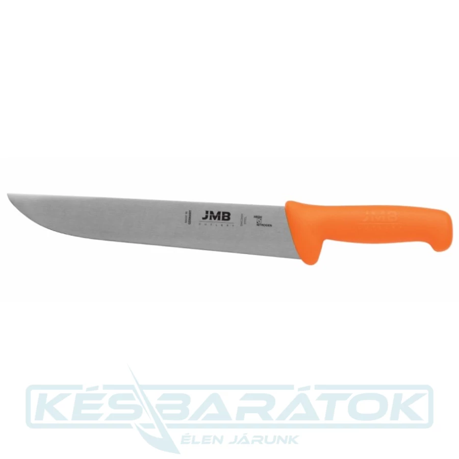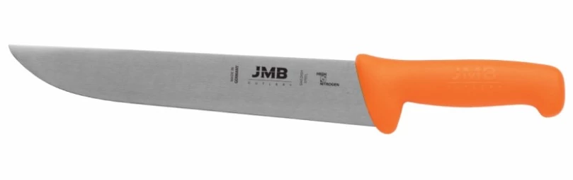 Svéd Sandvik 14C28N acélból készül. Ez a legfejlettebb high-tech késacél magas nitrogéntartalommal. Ideálisan finom és homogén szerkezetének köszönhetően ez az acélfajta nagy keménységet, kiváló éltartást és jó korrózióállóságot garantál! A fogantyú csúszásmentes és megfelel az európai higiéniai és élelmiszer-biztonsági szabványoknak. 26 cm-es professzionális tőkekés, szeletelő kés a németországi JMB Cutlery műhelyéből, mely kiválóan használható nagy méretű húsok vágására, szeletelésére, darabolására akár konyhai környezetben, akár professzionális húszemi környezetben is. A kés markolata kiváló fogást biztosít, így akár hosszabb távú munkavégzés során is kényelmesen, biztonságosan használható.