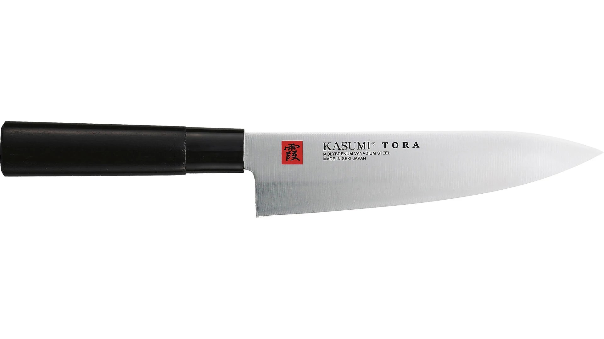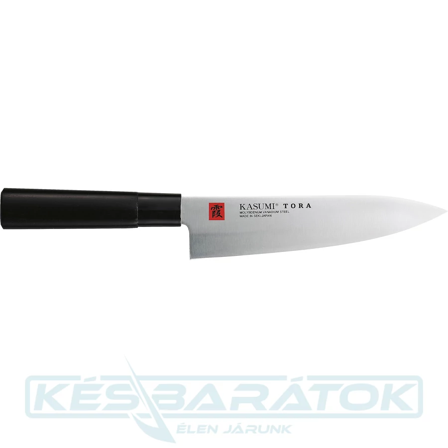 A Kasumi Tora sorozat kiemelkedik alapvető kialakításával és a felhasznált anyagok minőségével. A penge szilárd szénacélból készül, vanádium-molibdénnel dúsítva, egy népszerű japán acél, amely kiváló vágási teljesítményéről ismert. Ez az anyag kiváló rozsdásodásállóságot és könnyű élezhetőséget biztosít, így a penge hosszú ideig éles és hatékony marad. A nyél magnóliafából készült, fekete epoxigyantával kezelve, hogy javuljon a tartóssága és ellenálljon a külső hatásoknak. Ez a kezelés nemcsak elegáns és modern megjelenést kölcsönöz a nyélnek, hanem kivételes kényelmet is biztosít használat közben. A nyél könnyű és jól kiegyensúlyozott, ami precíz irányítást tesz lehetővé és csökkenti a kéz fáradását még hosszabb munkavégzés során is. Mosogatógépben nem tisztítható!