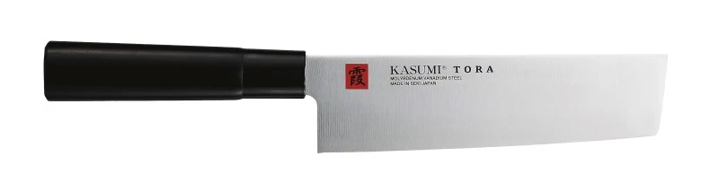 A Kasumi Tora sorozat egyszerű kialakításával és a felhasznált anyagok minőségével tűnik ki. A penge szilárd szénacélból készül, vanádium-molibdénnel dúsítva, amely egy népszerű japán acél, kiváló vágási teljesítményéről ismert. Ez az anyag kiváló rozsdásodásállóságot és könnyű élezhetőséget biztosít, így a penge hosszú ideig éles és hatékony marad. A nyél magnóliafából készült, fekete epoxigyantával kezelve, hogy javuljon a tartóssága és ellenálljon a külső hatásoknak.Mosogatógépben nem tisztítható! Ez a kezelés nemcsak elegáns és modern megjelenést kölcsönöz a nyélnek, hanem kivételes kényelmet is biztosít használat közben. A nyél könnyű és jól kiegyensúlyozott, így precíz irányítást tesz lehetővé és csökkenti a kéz fáradását még hosszabb munkavégzés során is.