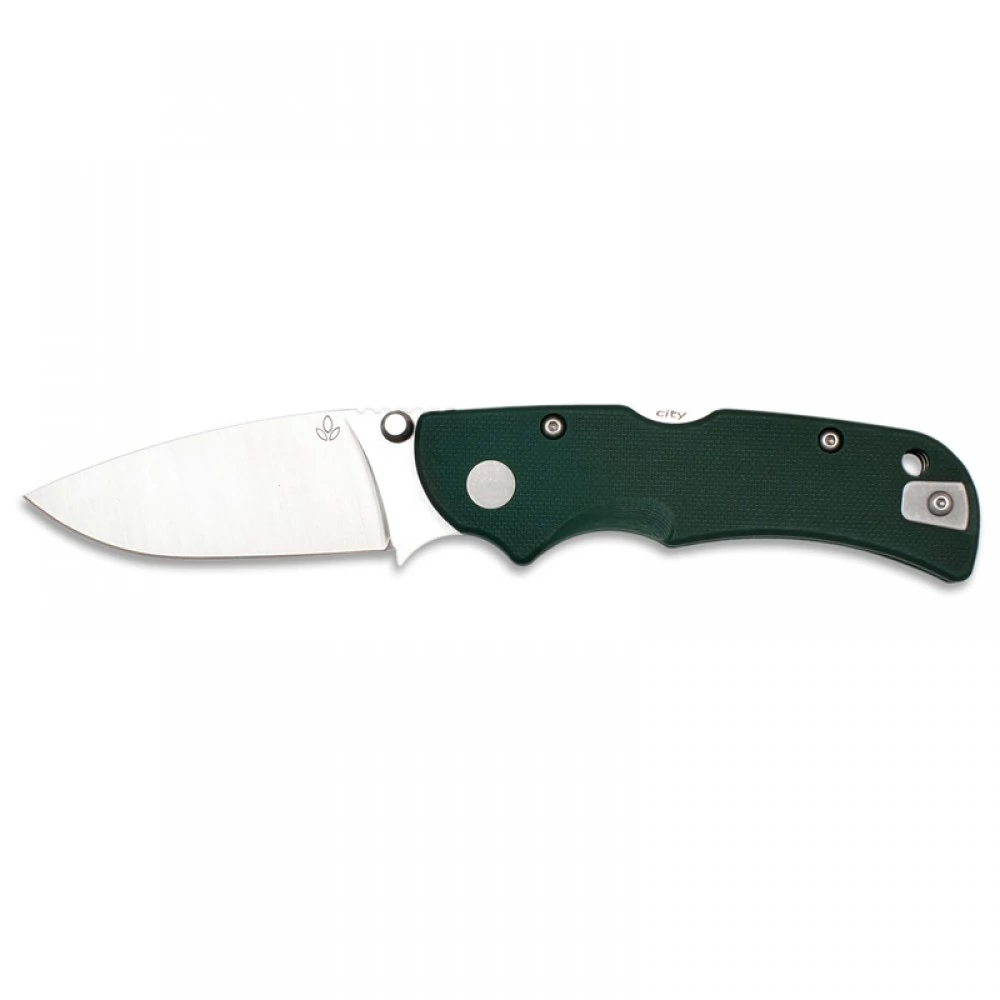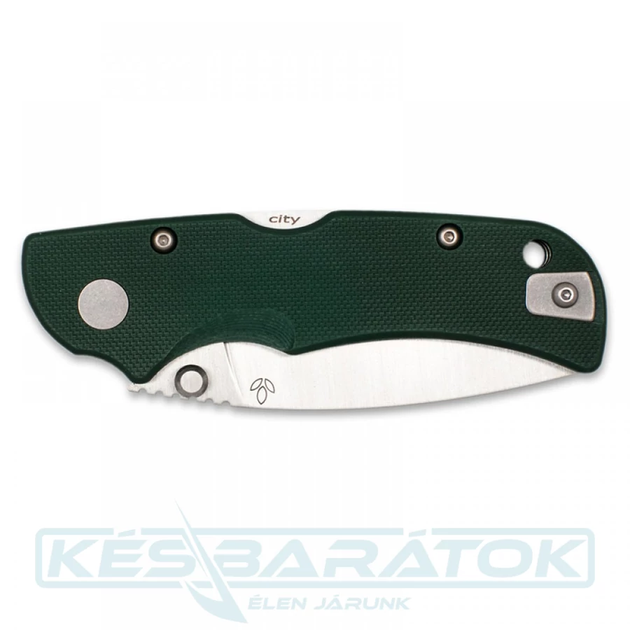 A Manly City CPM-S90V praktikus mindennapi kés, remek felhasznált anyagokkal. A porkohászati CPM-S90V penge az EDC kések mérföldköve. A pengét hátsó zár rögzíti, markolata zöld G10.