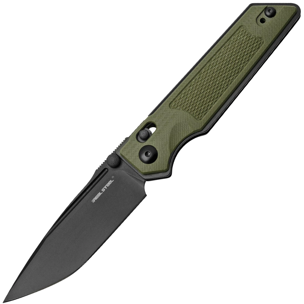 A Real Steel Sacra zsebkés Böhler K110 acéllal, zöld G10 markolattal érkezik. Kiváló vágási képességeivel, egyedi megjelenésével, remek minőségével fog minket elcsábítani. EDC szerepkörre tervezett, jó arányokkal megáldott zsebkés, mely több színvilággal is elérhető.